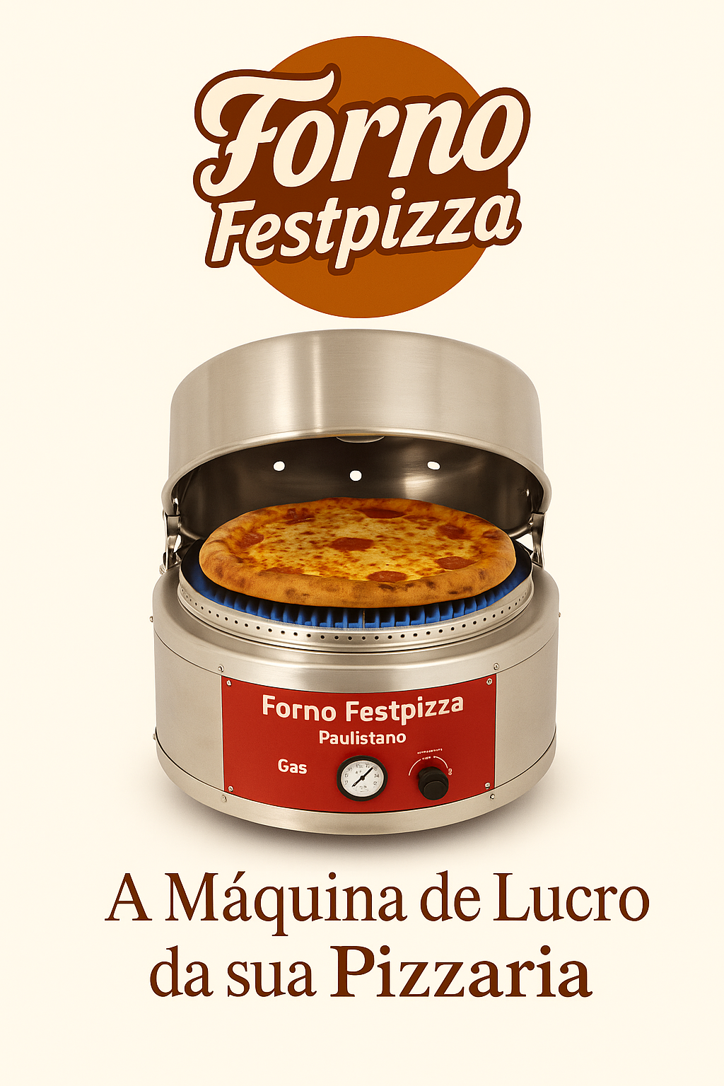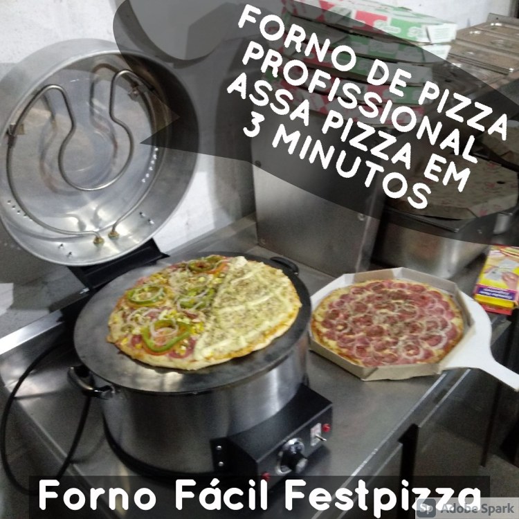 16 anos no mercado. Assa pizza em 3 minutos com qualidade e pode ser utilizado em qualquer local. Não precisa de instalações especiais